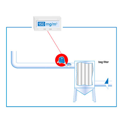 连续测量粉尘浓度,可以以趋势信号或绝对值的形式给出排放的粉尘浓度。
